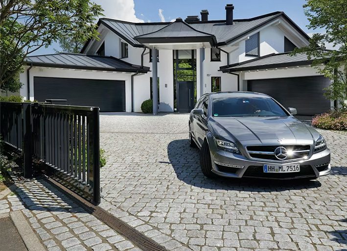 Rolltore “RollMatic” von Hörmann schaffen viel Platz vor und in der Garage. So können Sie zum Parken direkt vor das Tor fahren. Der Deckenbereich in der Garage bleibt ebenfalls frei. Beim Öff­nen parkt das Roll­tor im ge­schlos­se­nen Kas­ten – ge­schützt gegen Schmutz, Staub und Be­schä­di­gun­gen.